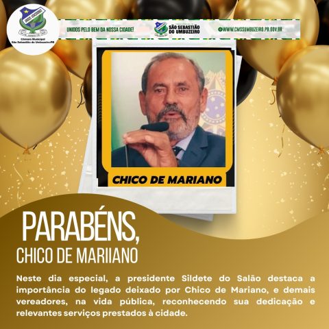 Presidente da Câmara Municipal de São Sebastião do Umbuzeiro, vereadora Sildete do Salão, emite nota pelo aniversário do ex-prefeito e vereador Chico de Mariano