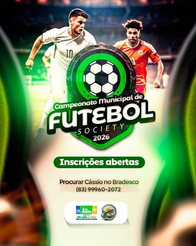 Prefeitura de São João do Tigre abre inscrições para a disputa do Campeonato Municipal de Futebol Society 2026