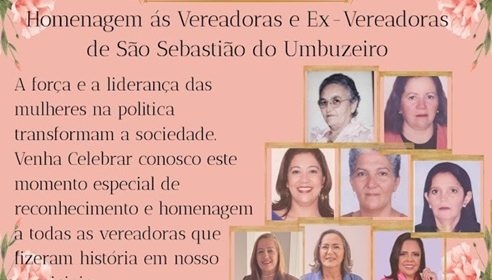 Câmara Municipal de São Sebastião do Umbuzeiro irá realizar nesta segunda-feira, dia 16, Sessão Solene para homenagear as Vereadoras e Ex-Vereadoras com a inauguração da Galeria Rosa