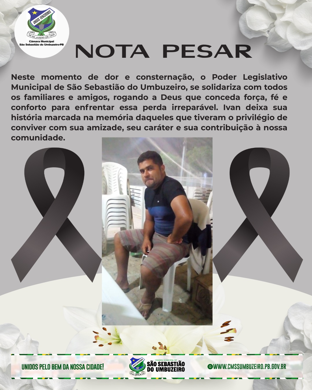 Na noite desta segunda-feira dia 16 de fevereiro, a presidente da Câmara Municipal de São Sebastião do Umbuzeiro, vereadora Sildete do Salão, em nome de todos os parlamentares que compõem esta Casa Legislativa, manifesta profundo pesar pelo falecimento de Ivan Freire Santos. Neste momento de dor e consternação, o Poder Legislativo Municipal de São Sebastião do Umbuzeiro, se solidariza com todos os familiares e amigos, rogando a Deus que conceda força, fé e conforto para enfrentar essa perda irreparável. Ivan deixa sua história marcada na memória daqueles que tiveram o…