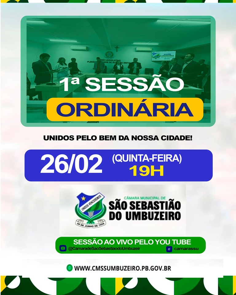 A Câmara Municipal de São Sebastião do Umbuzeiro retoma, nesta quinta-feira (26), às 19h, as sessões ordinárias após o recesso parlamentar. A reunião marca o início dos trabalhos legislativos do ano de 2026, reafirmando o compromisso dos vereadores com as demandas da população. Na Ordem do Dia, constam quatro indicações de grande relevância para o município: 🔹 INDICAÇÃO Nº 001/2026 – De autoria do vereador Alexandre Domingos Bezerra, solicita à Excelentíssima Senhora Prefeita Adalcy Milene de Freitas Neves, por meio da Secretaria de Infraestrutura e Serviços Urbanos, a instalação de…