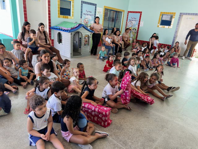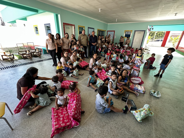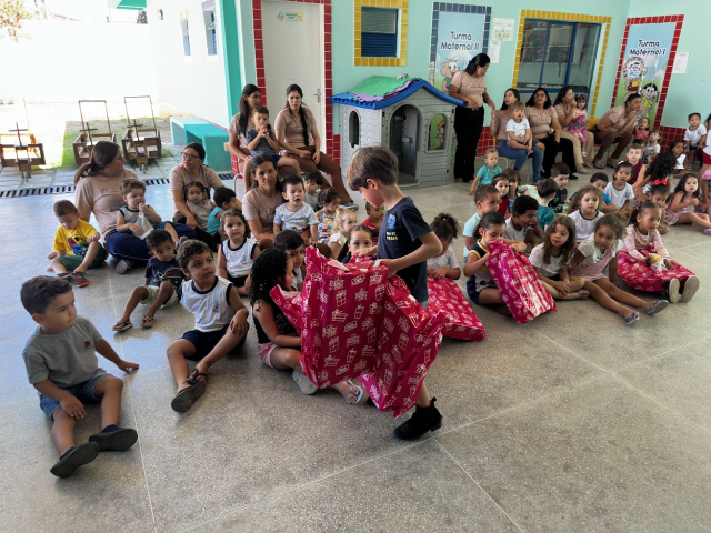 As crianças receberam os presentes com entusiasmo, tornando o dia ainda mais especial.