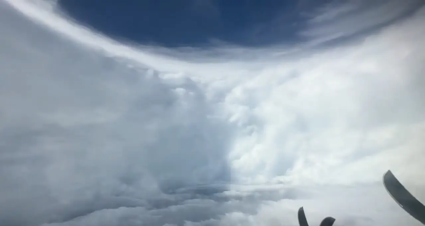 As fotos foram captadas por um esquadrão militar a bordo de um avião a hélice, usado em missões de coleta de dados no centro de tempestades. A equipe registrou uma pressão atmosférica de 933 hectopascais, nível que indica força máxima na escala Saffir-Simpson.