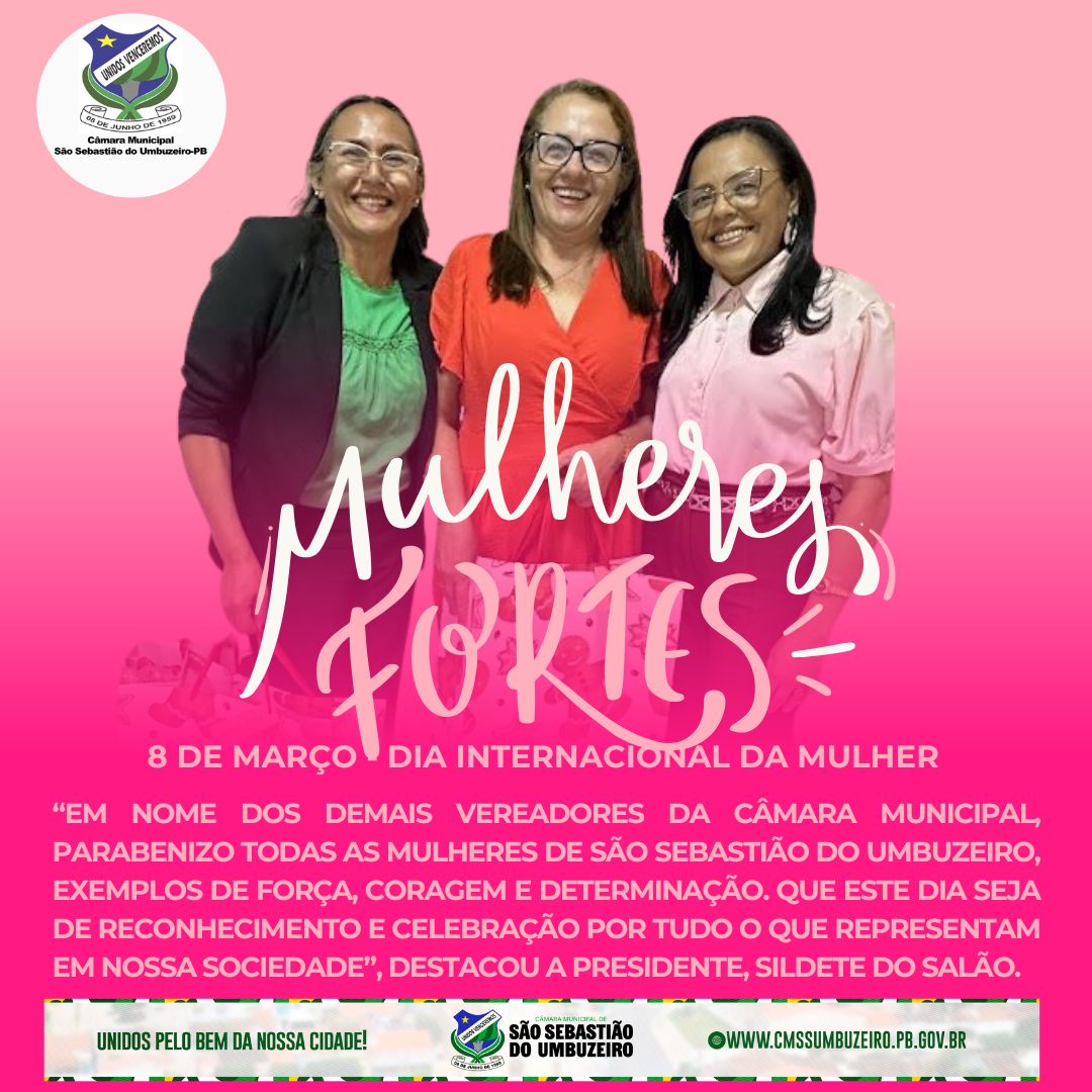 A presidente da Câmara Municipal de São Sebastião do Umbuzeiro, vereadora Sildete do Salão, em nome de todos os vereadores da Casa Legislativa, emite uma nota especial parabenizando todas as mulheres umbuzeirenses pela passagem do Dia Internacional da Mulher, celebrado neste domingo dia 8 de março. A data representa um momento de reconhecimento, respeito e valorização da força, da dedicação e da importante contribuição das mulheres na construção de uma sociedade mais justa e igualitária. Em São Sebastião do Umbuzeiro, as mulheres desempenham papéis fundamentais em suas famílias, no trabalho,…