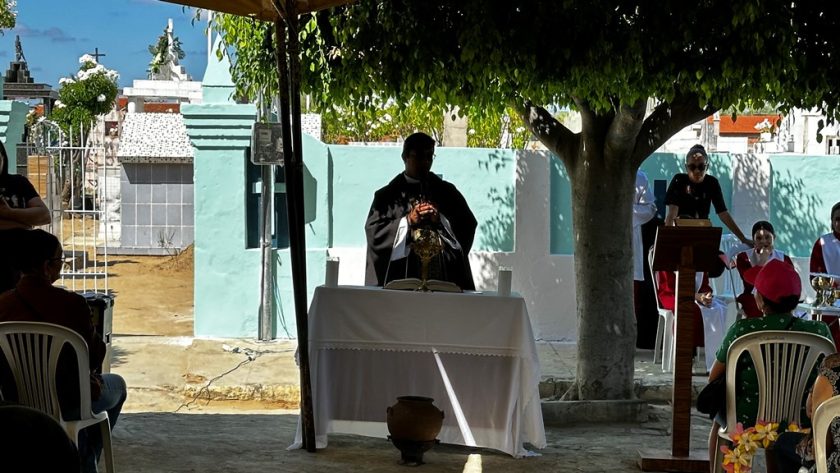 Na manhã deste domingo, 2 de novembro, fiéis se reuniram em São Sebastião do Umbuzeiro para participar da tradicional Missa de Finados, celebrada em memória de todos os falecidos. A celebração foi presidida pelo Padre Helton e aconteceu em frente ao Cemitério Municipal, reunindo dezenas de pessoas que foram prestar homenagens e rezar por seus entes queridos.